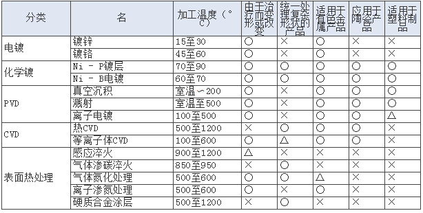 尽管表面处理可以获得优异的性能,但与产品和部件的兼容性较差,除非符合使用环境或使用条件,否则效果会减半。相反,有些情况适得其反。为了防止这种情况,有必要充分了解个别表面处理的特点(表2)。