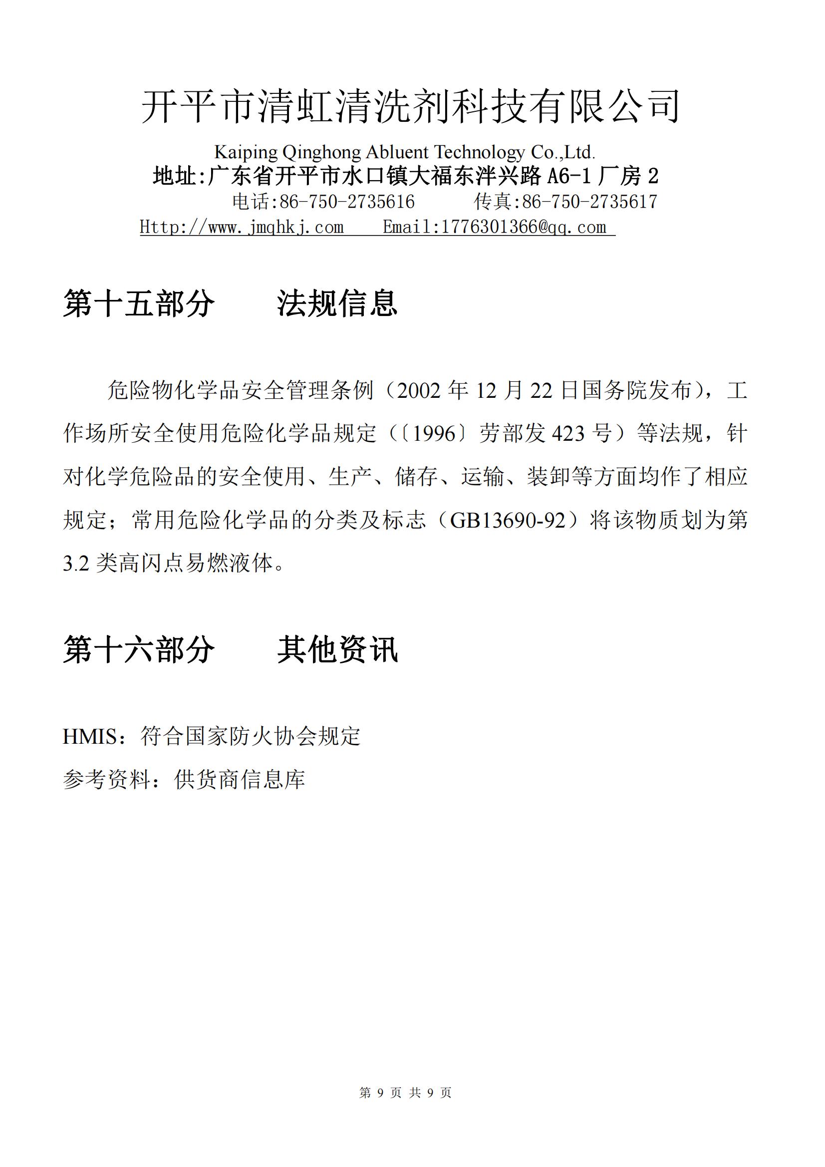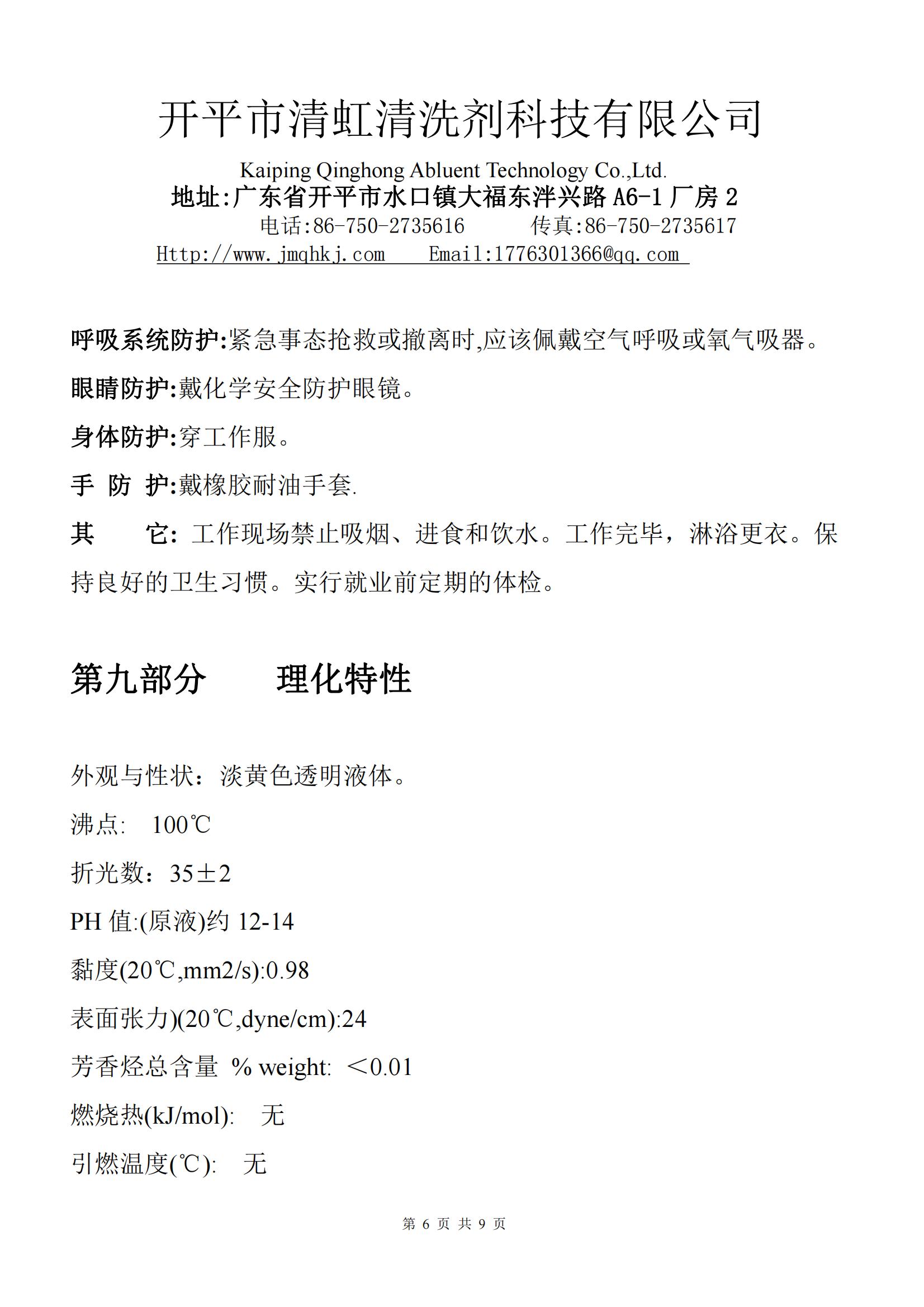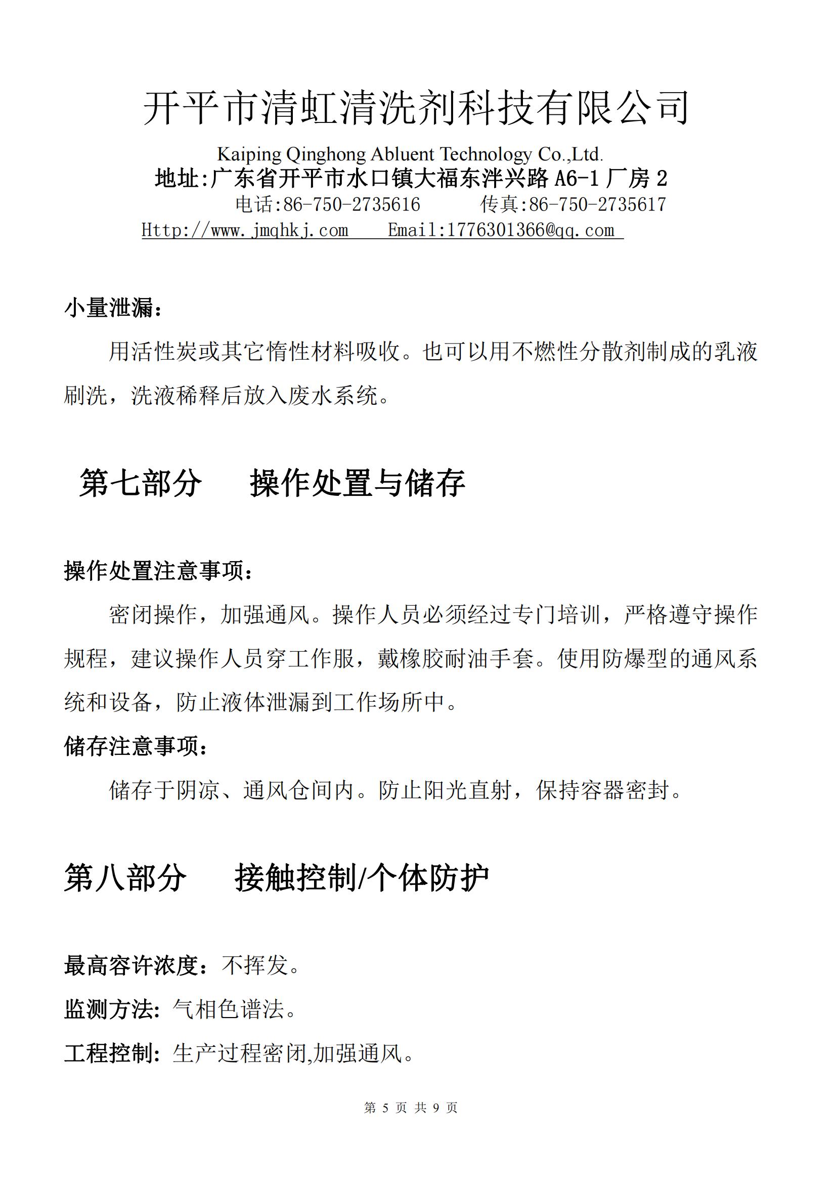 • HL-319清洗剂MSDS