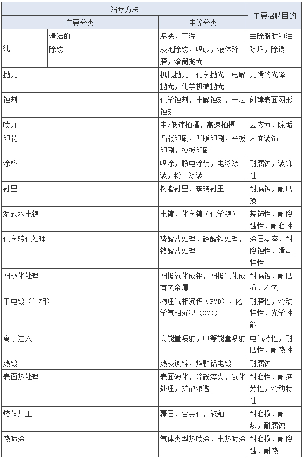 表1:通过处理方法进行表面处理的分类