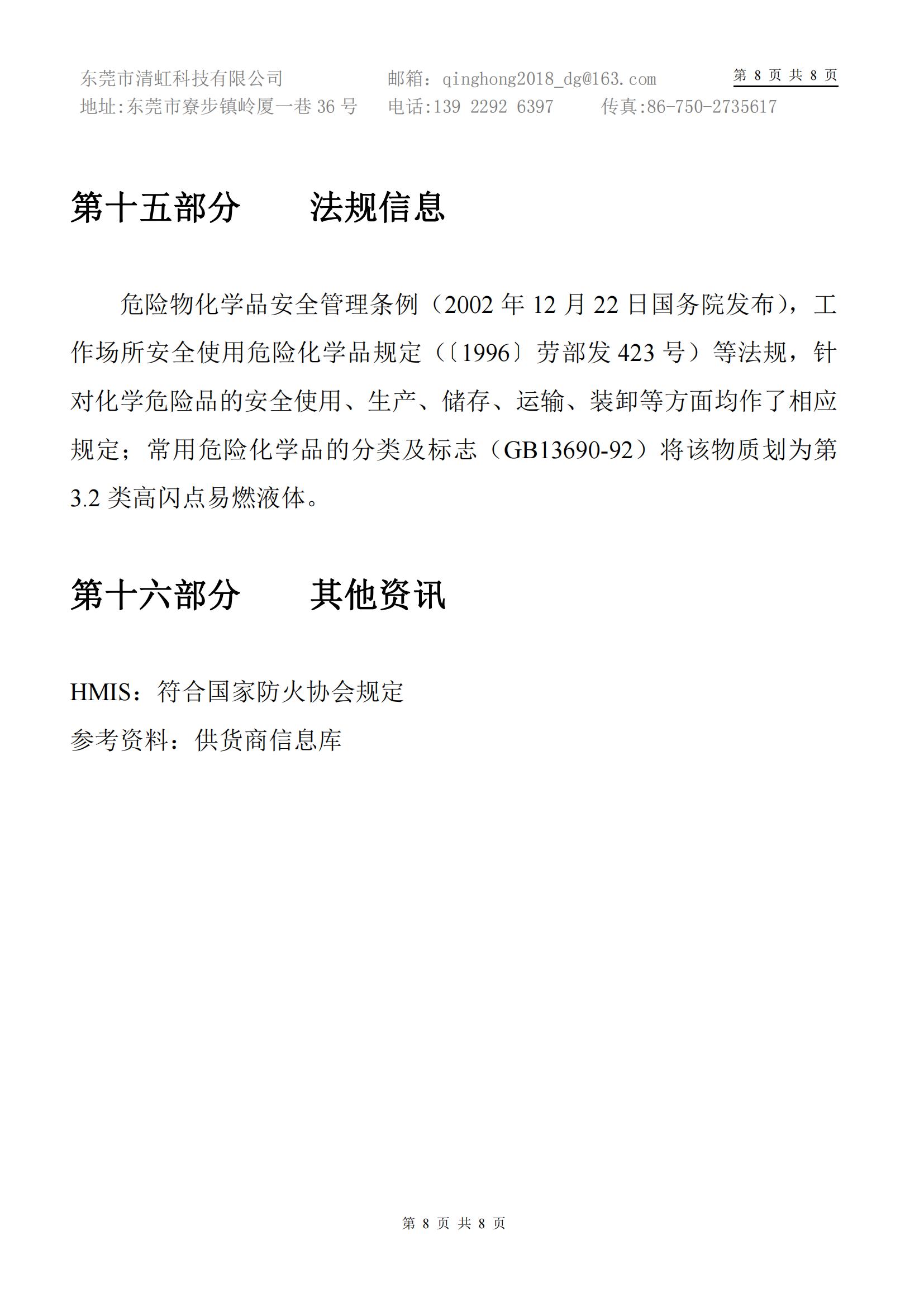 • HL-319清洗剂MSDS